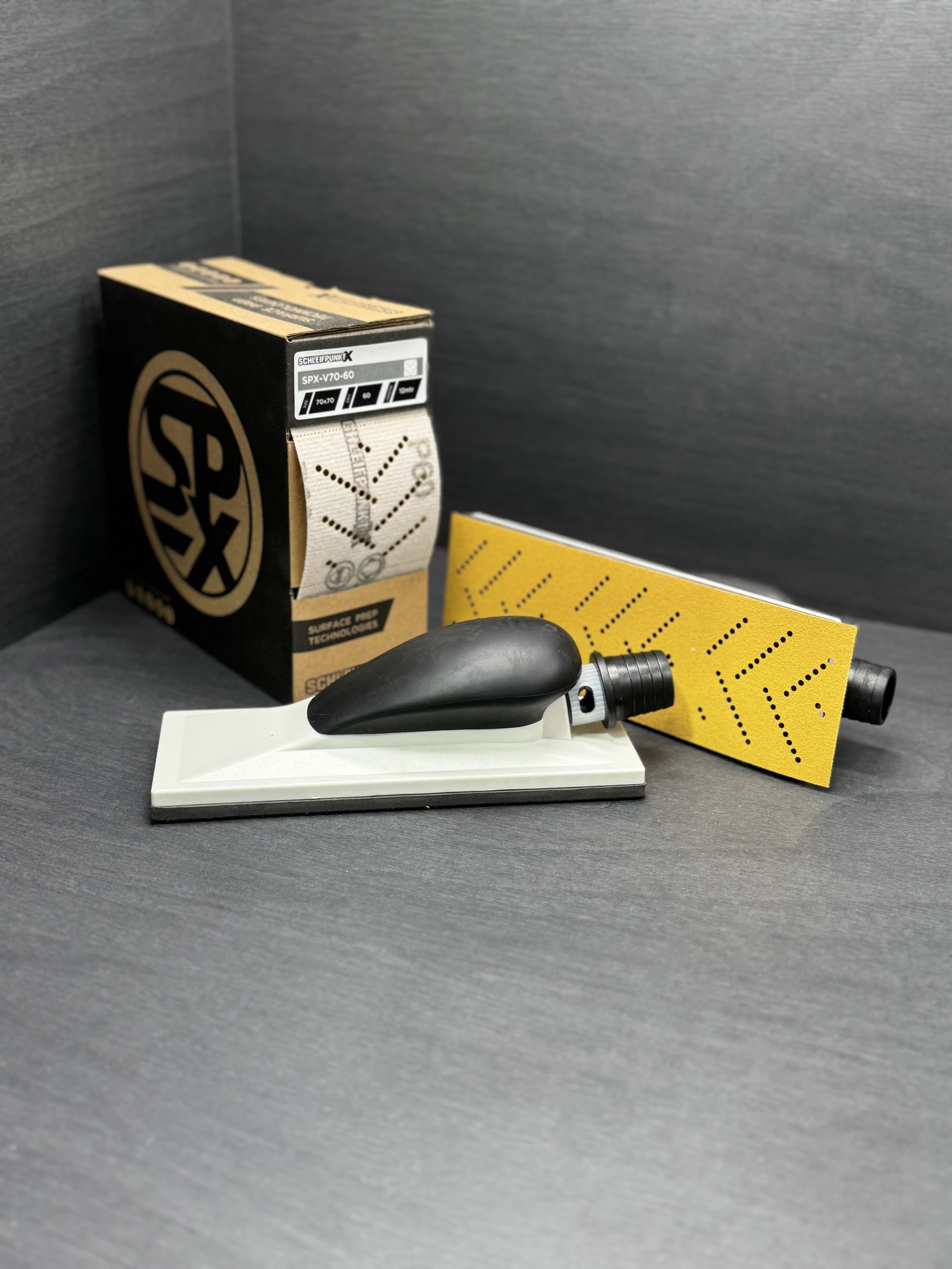 SPX Sanding Block with Vacuum Attachment – Grey/Black (198 × 70 mm)