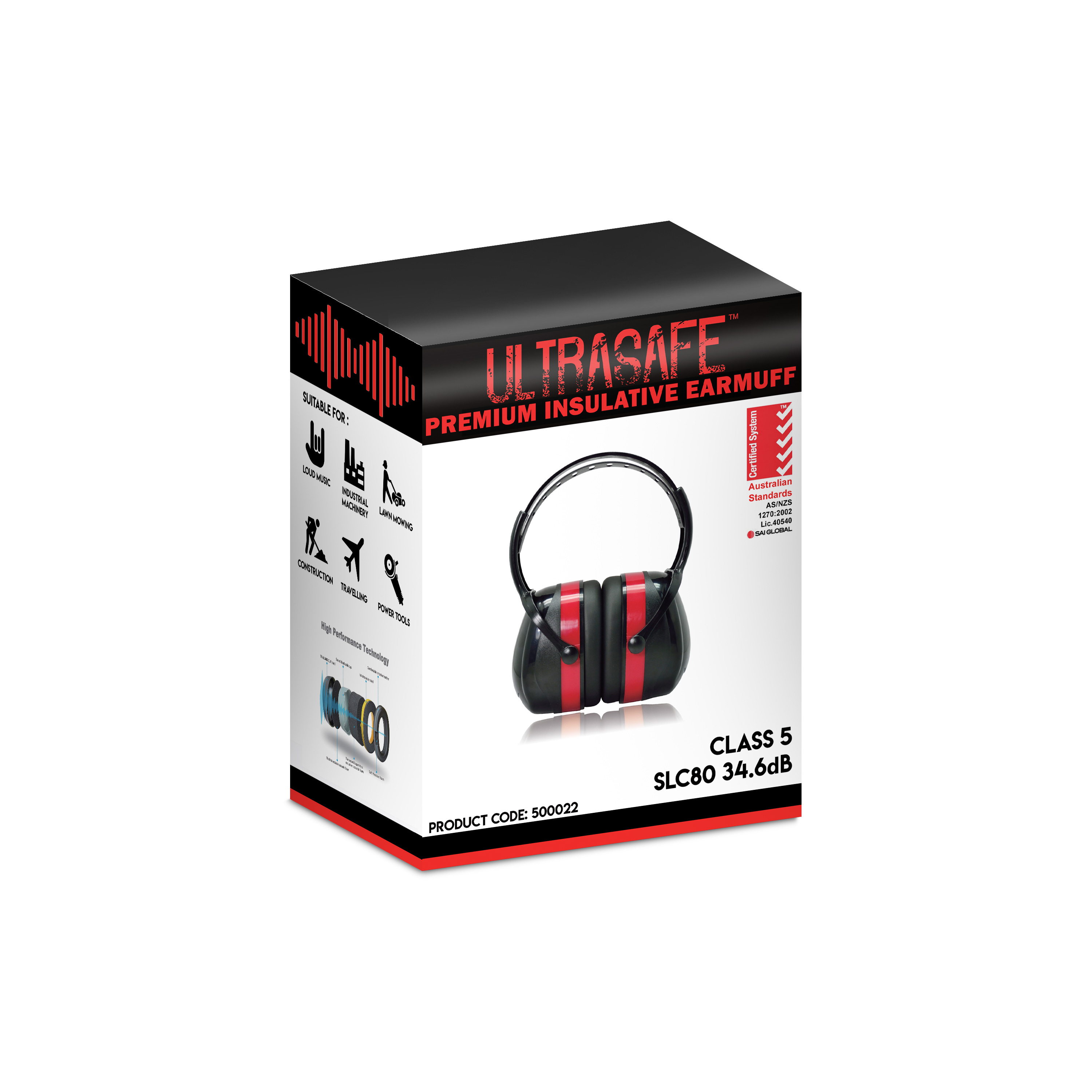 FEATURES AND BENEFITS • Class 5 - SLC80 34.6dB • Thick ABS cup shell • Insulated perfect for electrical work • Acoustic foam • Sound reflecting outer shell • High quality soft ear cushions for all day comfort • Adjustable headband • Comes in individual display box • Certified to AS/NZS 1270:2002